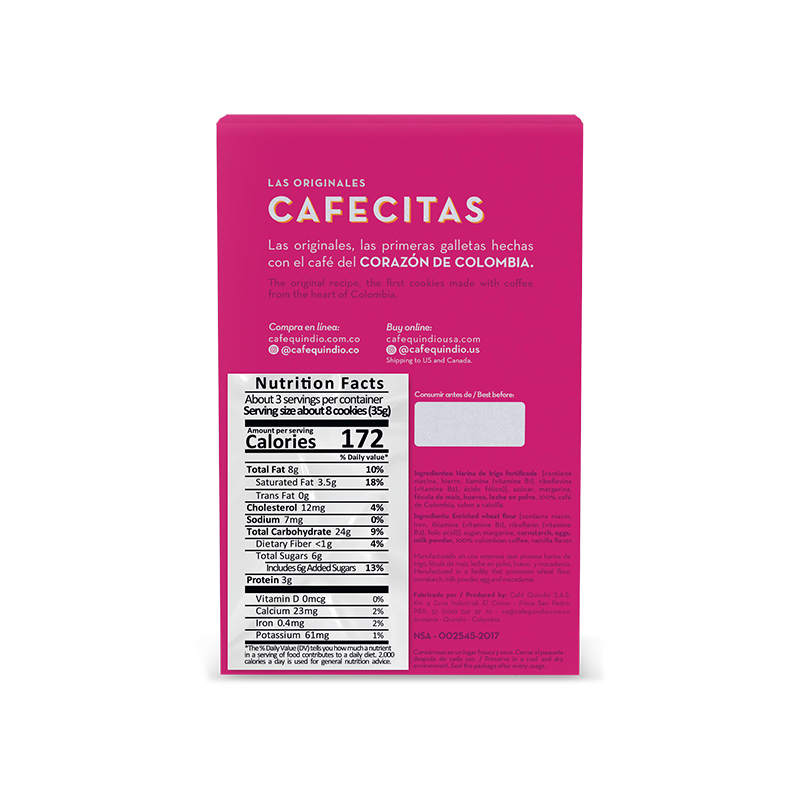 At Encanto Café Store, we believe coffee can be savoured beyond the cup. That’s why we’ve selected these exquisite Cafecitas cookies, crafted with authentic Colombian Coffee by Café Quindío. They are the perfect treat for any moment of the day—especially for coffee lovers seeking a sweet, unique experience.